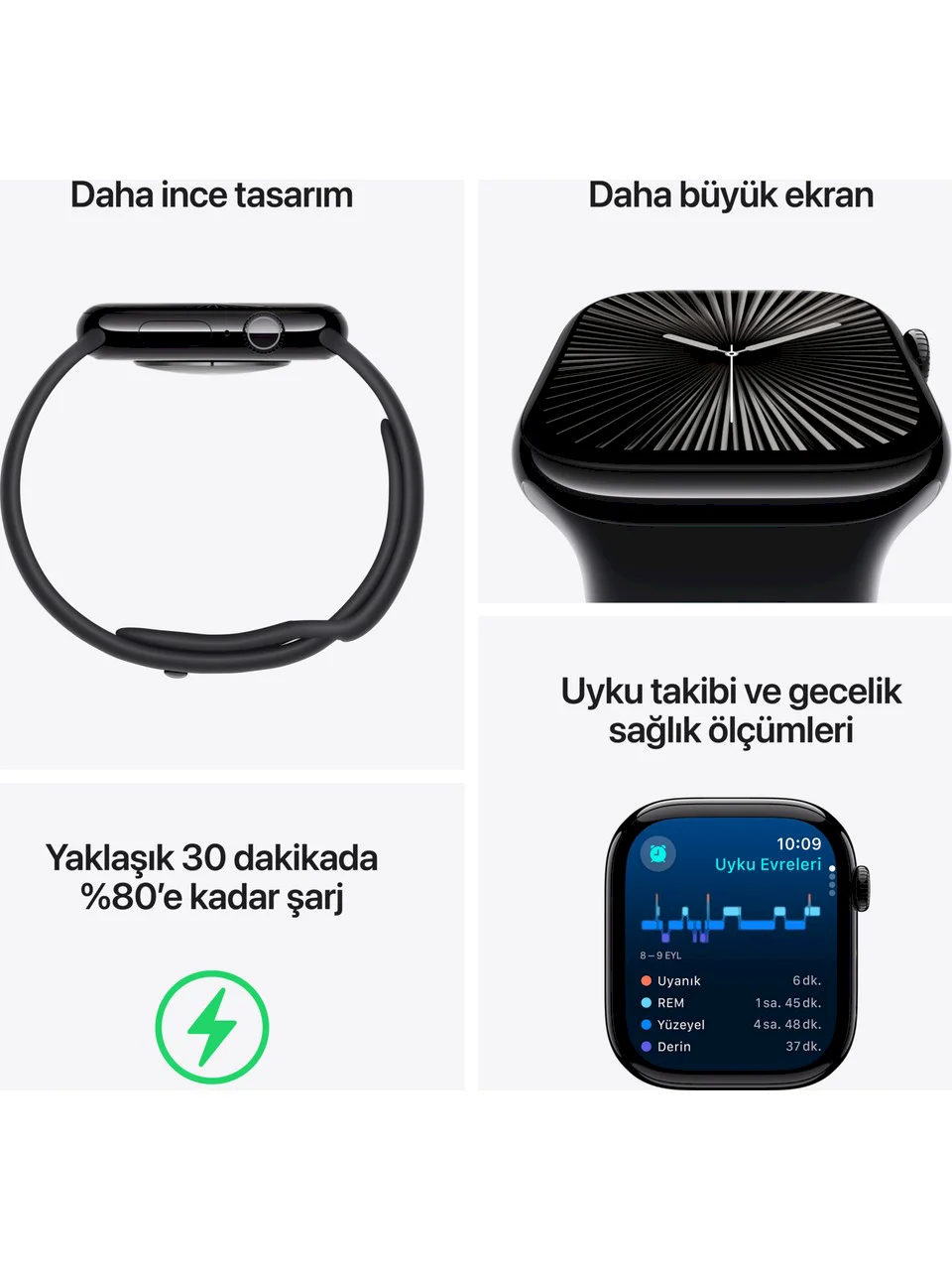 Ürün özellikleriSu Geçirmezlik319 ATMKameraVarKasa Kalınlığı10 mmTitreşimVarGPS (Küresel Konumlama Sistemi)VarSesli GörüşmeVarKasa ŞekliOvalCinsiyetErkekEkran Boyutu0,42 inçUyumlu MarkaAppleUyku TakibiVarKasa Yüksekliği14 mmAdımsayarVarKasa Genişliği10 mmİşletim TürüiOSKalp Ritmi ÖlçmeVar